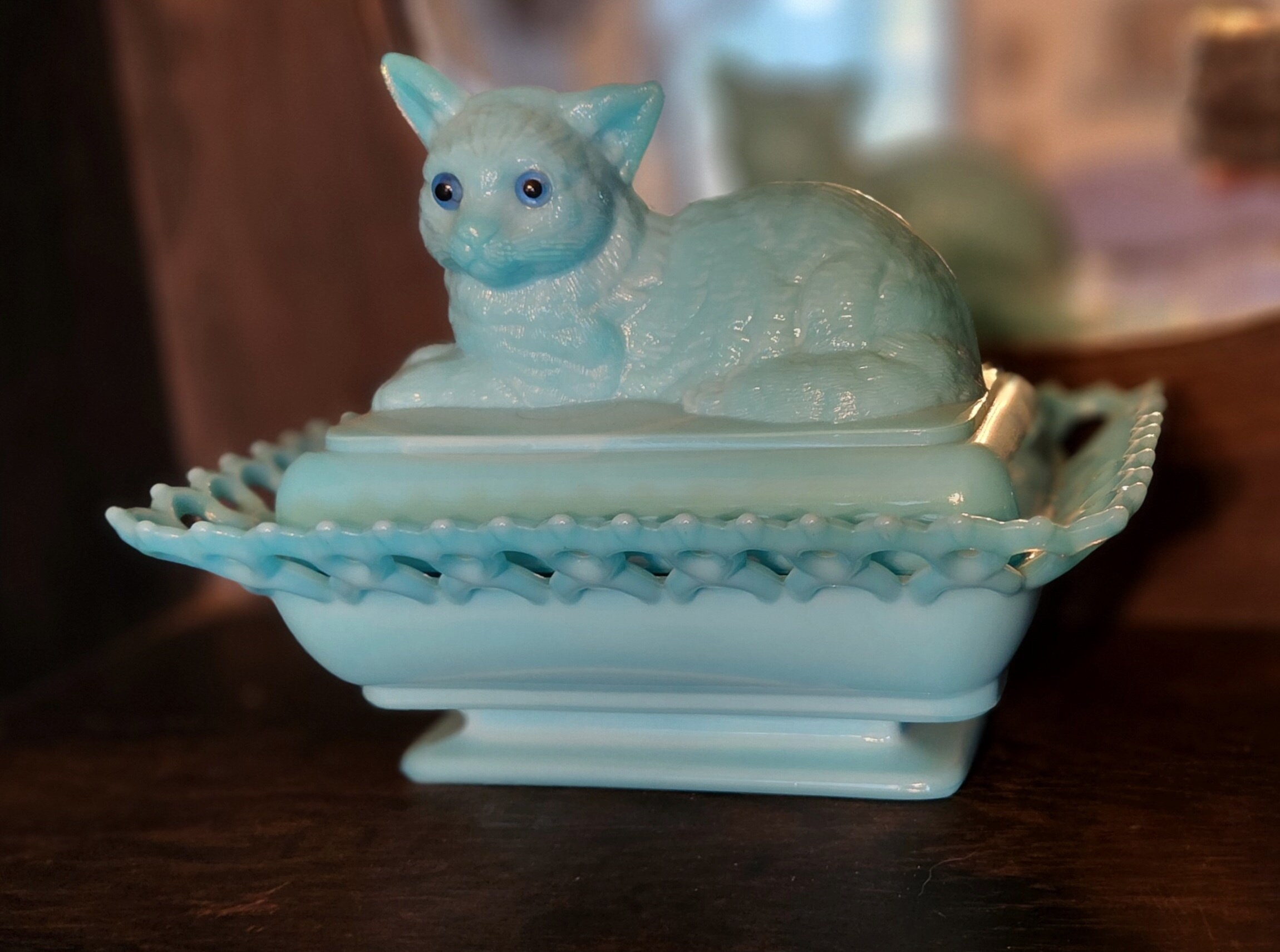 Blue Glass Cat Dish Etsy
